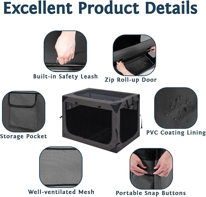 - Indoor & Outdoor Use: If you are a travel lover, our lightweight travel dog crate is definitely your ideal choice. Whether you are going to the beach or camping, our travel crate is convenient to carry, easy to clean, and provides a comfortable space for your pets.