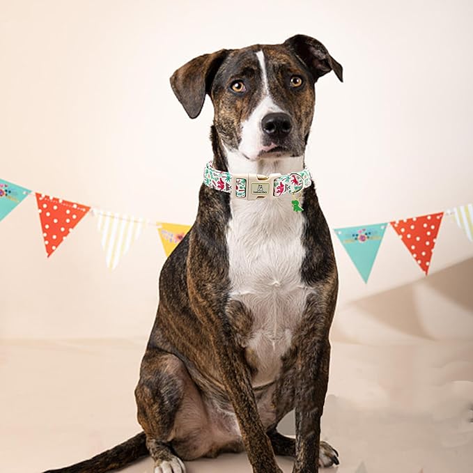Lionheart glory Dog Collar, Dinosaurs Print Dogs Collar Adjustable Soft Comfortable Collars for Large Dogs Girl or Boy Pet Gift Cute Spring Summer Collar