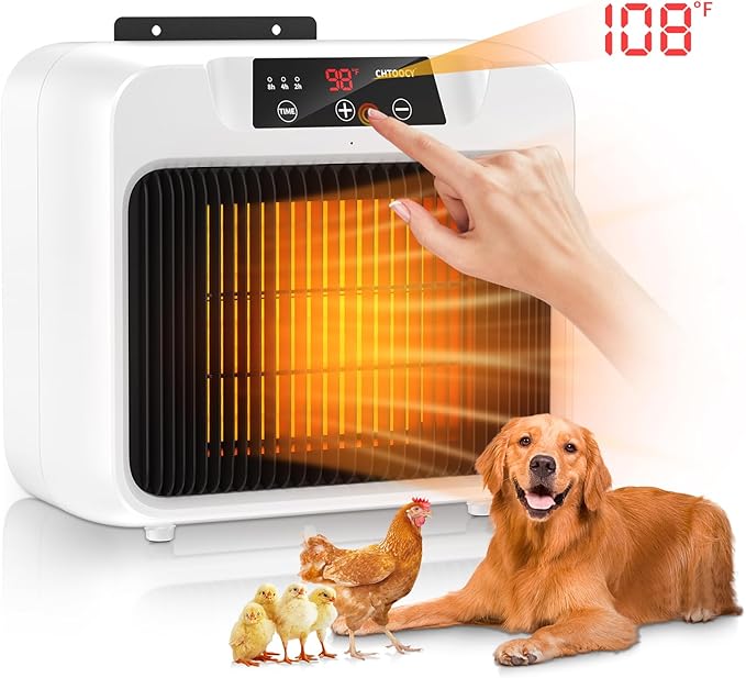 - ใ๐๐ ๐ ๐๐ฌ๐ญ ๐๐๐๐ญ๐ข๐ง๐ ๐๐จ๐ซ ๐๐จ๐ ๐๐จ๐ฎ๐ฌ๐ใThe Chtoocy outdoor dog house heater features a 600W PTC heating system that quickly raises the temperature in just 3 seconds.A safe&powerful dog heater with built-in fan circulates hot air to heat up to 150 ftยณ of pet house outdoor kennel. Using the smart heating levels, you can switch the heat temp depending on how cold it is outside.