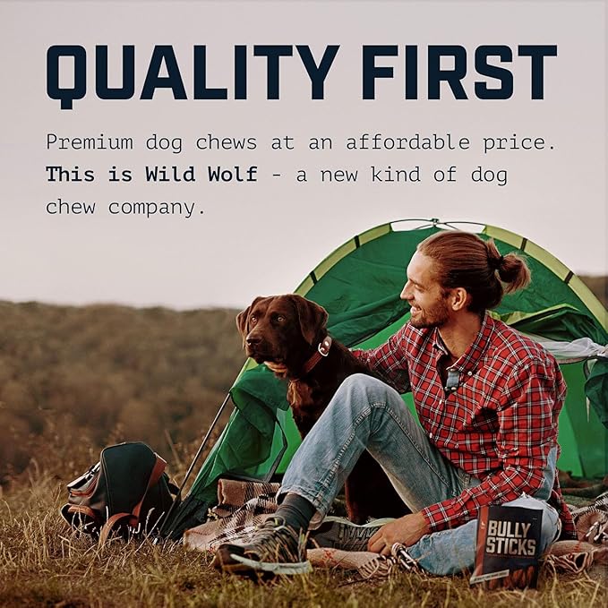 Wild Wolf 12-inch Angus Bully Sticks (8 Ounces) Healthy, All-Natural, Long-Lasting Dog Chew Bones - Odor-Free - Mixed Thickness
