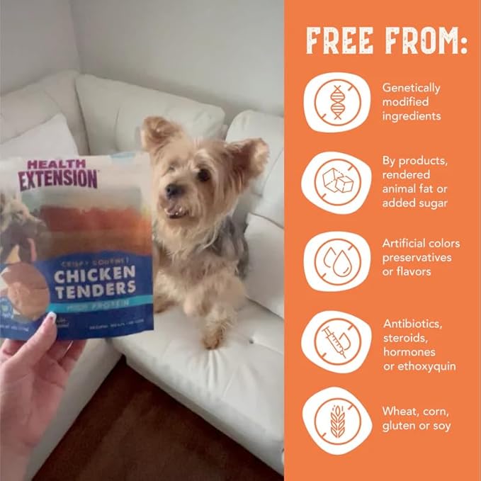 Health Extension Grain-Free Chicken Tenders Dog Treats, 4oz (113g) – Natural, Crispy Gourmet Training Treats for Adult Dogs and Puppies (Pack of 6)