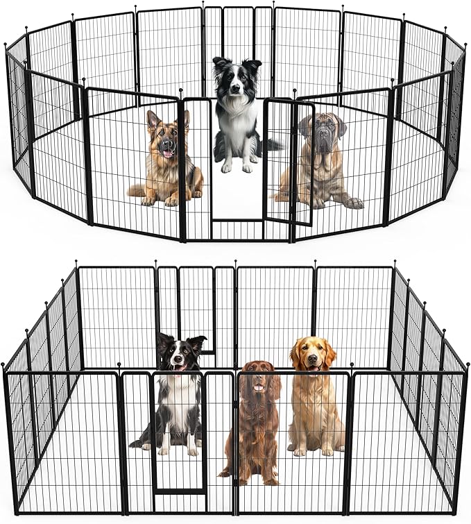 - 【Easy Assemble & DIY Shapes】Each panel is a separate piece. The panels could be assembled in just a few minutes without tools. You could DIY the dog pen to any shape you need, like square, rectangle, round, etc according to your house, garden or lawn.