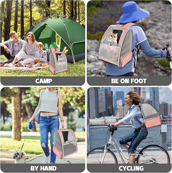 - Ventilated Mesh and Comfortable: Three-sided PVC mesh design ensures excellent air circulation and visibility, you can clearly view the status of pets inside the bag, and pets can also observe the outside. And this cat carrier backpack is firmly structured, providing ample room for your pet to move around