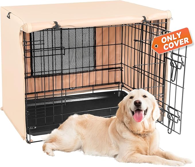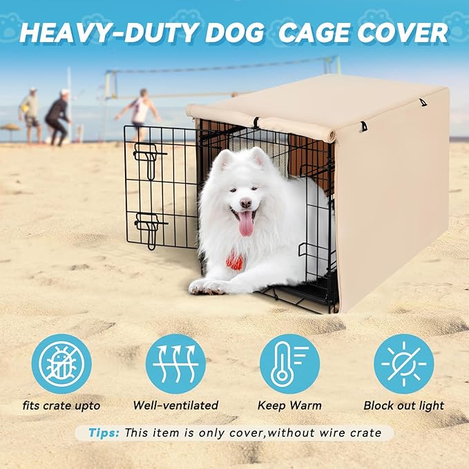 X-ZONE PET 48" Dog Crate Cover for Indoor/Outdoor - Heavy Duty Polyester Pet Kennel Cover Fits for Wire Dog Cage Beige