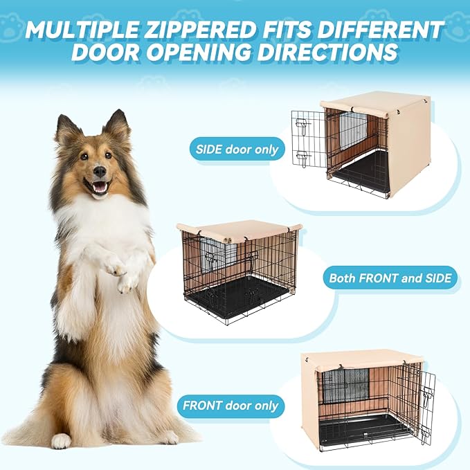 X-ZONE PET 36" Dog Crate Cover for Indoor/Outdoor - Heavy Duty Polyester Pet Kennel Cover Fits for Wire Dog Cage Beige