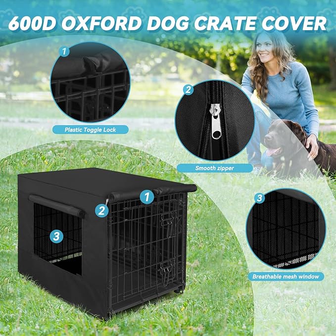 - Durable material: The cage covers is made of premium 607-density oxford cloth with PU coating, claw-proof and diffcult to tear, provide a safe and private space for dogs