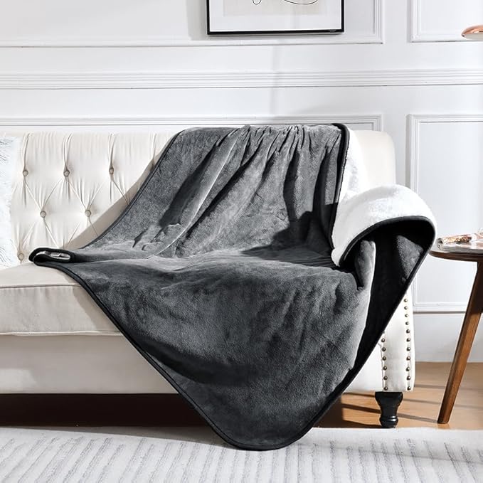 Waterproof Blanket for Bed Couch Sofa, Soft Liquid Pee Proof Pet Blanket for Dog Puppy Cat, Reversible Sherpa Fleece Blanket for Furniture Protector (Dark Grey, 60x80 inches)