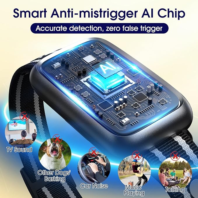 - 【UPGRADED SMART CHIP, FULLY AUTOMATIC ANTI-BARKING CONTROL & 100% ANTI-MISTRIGGER】 The latest smart chip enables this bark collar for small dogs to recognize specific dog barking sounds, preventing erroneous triggering due to other sounds. The upgraded processor can trigger the barking within 0.01 seconds without any delay, efficiently preventing dogs from barking. Everything you need, on the NQQHNN 2 pack bark collar for small, medium and large dogs!