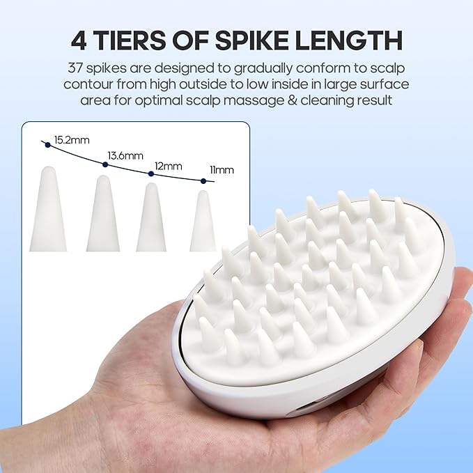 - [Gentle 4-Tier Bristles]– Designed for all fur types (short, long, thick, or curly), the soft yet firm spikes massage without pulling or scratching, making it perfect for dogs, cats, and even human scalp use!