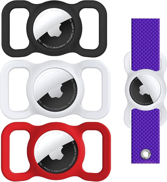 Dog Air Tag Holder (3-Pack) | Apple Air Tag GPS Tracker for Dogs | Airtag Dog Collar Holder | Airtag Holder for Dog Collar | Air Tag Holders | Black, White & Red