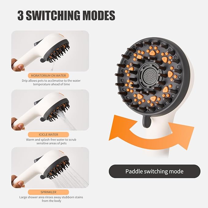 - [Sprayer Function Rainfall Head] Our dog grooming shower head Equipped with a spray function, it can easily remove the remaining dog hair after washing the dog in the bathroom, easily wash away stubborn stains on the dog's feet, and enjoy a convenient and comfortable new experience that other dog shower head do not have.
