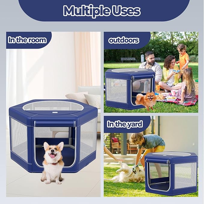 - 🐶『Ample Space and Visibility』- The design offers ample space for your puppy to move around freely. Our fence is convenient for the owner to carry the dog in and out, breathable space for the dog, the transparent nature of the mesh cloth allows for good visibility, so your pet doesn't feel isolated while still being contained. It gives them a sense of security while allowing you to keep an eye on them. and the Upward rolling door design is convenient for the dog to enter and exit the door.