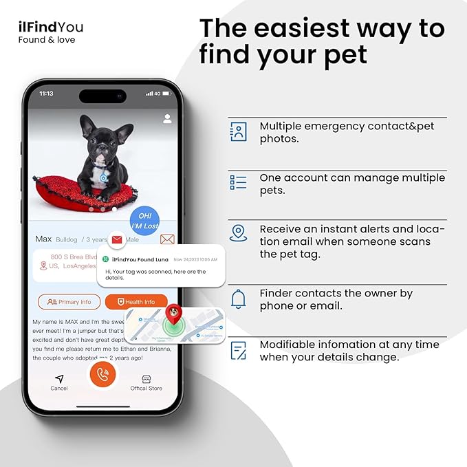 - Peace of Mind: ilFindYou pet name tag is a one-time purchase with no extra fees or need for installing any APP; Reliable method for identifying lost pets; NO longer to worry about a dead battery or out of connection range; with our soundless pet tags find serenity for you and your pet