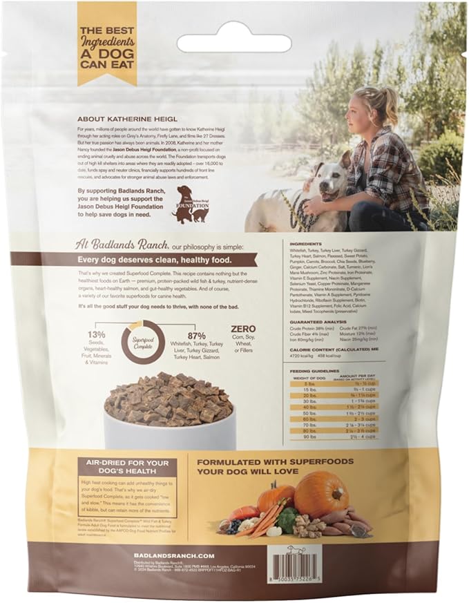 Superfood Complete, Air-Dried Adult Dog Food - High Protein, Zero Fillers, Superfood Nutrition by Katherine Heigl (11.5 oz. Wild Fish and Turkey Formula)
