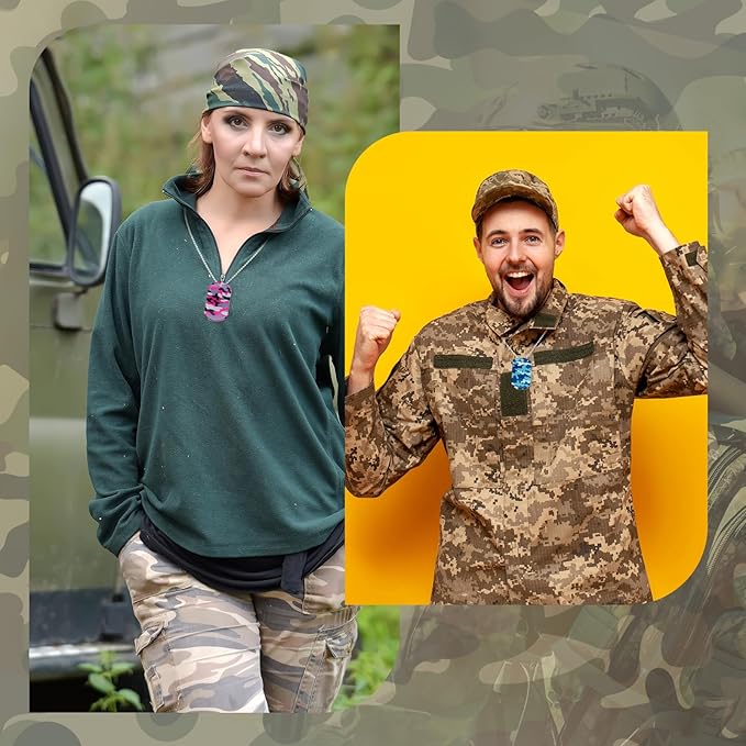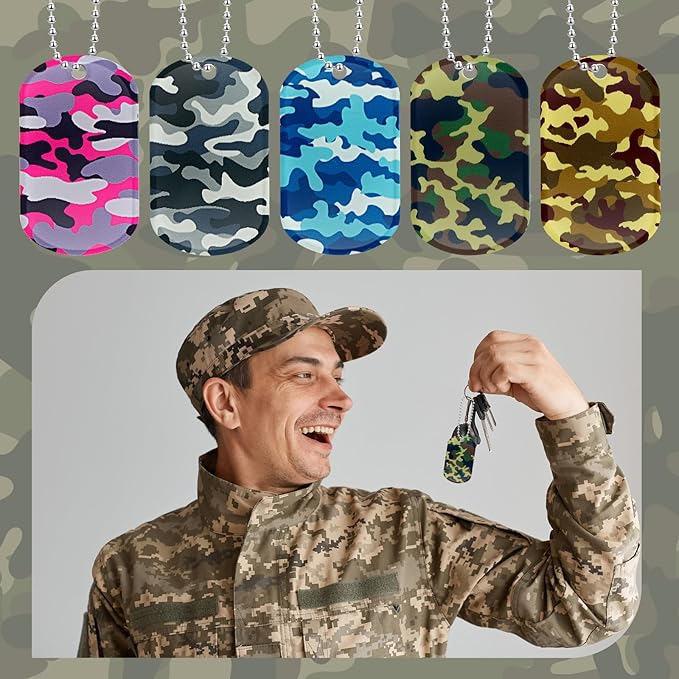 - 5 Camouflage Designs: the camouflage dog tags are designed in 5 colors, exquisite and eye catching which can be applied as delicate gifts, easy to match your outfits; This vibrant mix of colors also adds a playful element, and making the wearer stand out stylishly