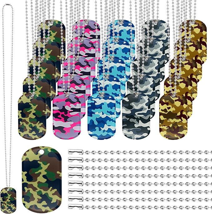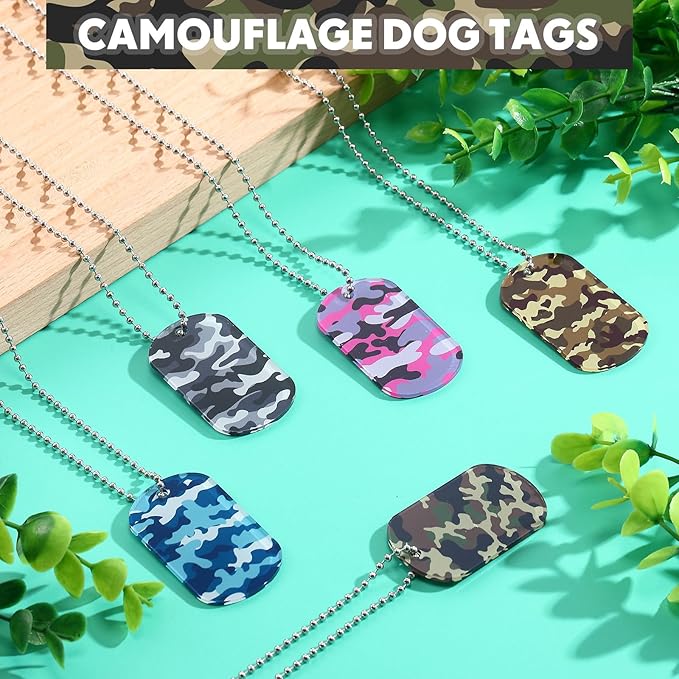 Wonderjune 60 Pack Dog Tag Necklaces Acrylic Dog Tags Military Dog Tags Party Supplies Dog Tags Bulk Include 30 Pcs Dog Tags with 30 Pcs 70cm Long Chains for Soldier Men Dogs(Camouflage)