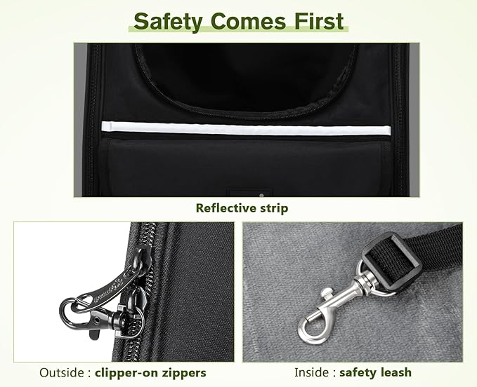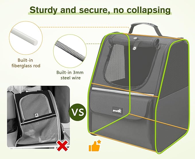 - 【 STURDY & SAFETY 】: The pet backpack carrier has sturdy steel wire frames on the left and right sides, as well as fiber rods on the top and bottom, which can effectively prevent collapse, allowing for maximum stability and shape retention. The double-sided pad bottom features a removable and washable cover. It also contains pearl cotton and honeycomb boards in the middle, which optimize stability and enhance comfort. The built-in adjustable safety rope and locked zippers prevent your pet from escaping