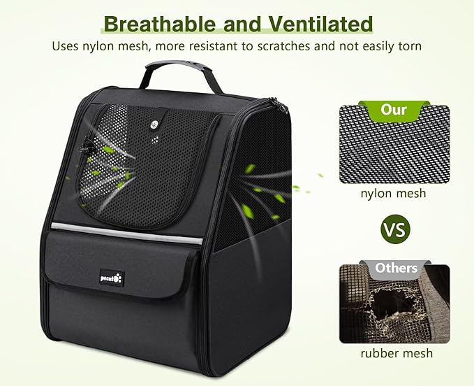 - 【 PREMIUM MATERIALS FOR LONG-LASTING 】: The Pecute pet backpack is crafted from premium 300D Cationic Oxford fabric with PVC inner, ensuring tear resistance, non-toxicity, and non-irritation. The mesh fabric we use is made of nylon material, which is more durable than rubber mesh and not easily scratched by pets