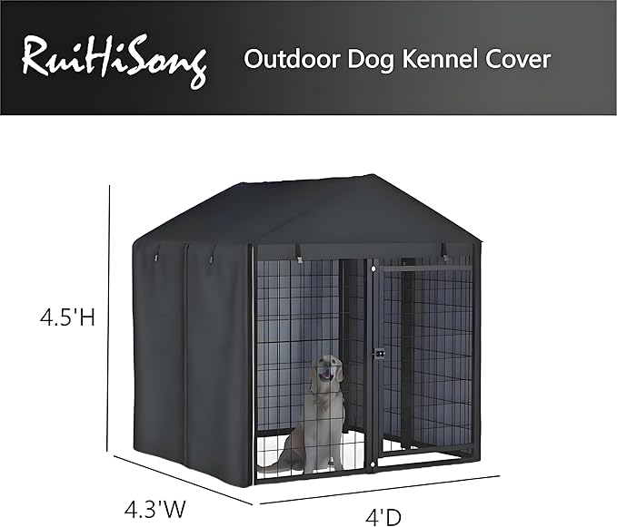 - Outdoor Kennel Cover : Measures 4'D4.3'X4.5'H. Please Note: Cover only. Please measure your kennel size before purchase to ensure proper fit.