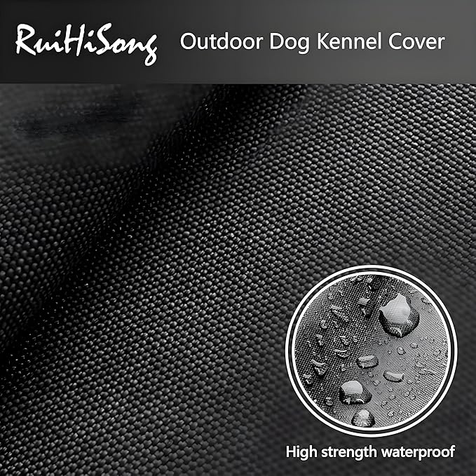 - Waterproof Cover:Our kennel cover is made of 600D durable oxford fabric with waterproof PU coating, which is waterproof, UV resistant and tear resistant. The inside of the cover is equipped with ties so that it can be fixed to the kennel so that it won't be blown away by high winds.