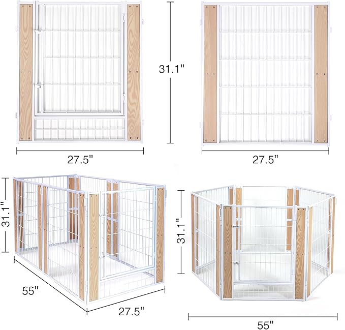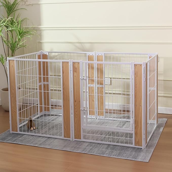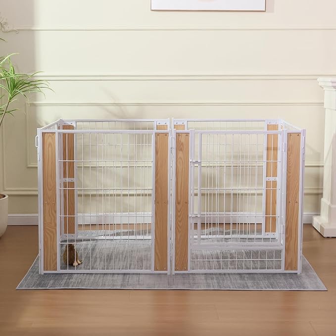- 【Robust and Aesthetic Structure】Constructed from sturdy metal components, our puppy playpen is built to last, resisting damage from small pets while enhancing its longevity. The design is not only strong but also aesthetically pleasing, blending seamlessly with your home decor. Rounded edges safeguard your pets against scratches, ensuring their safety within the enclosure.