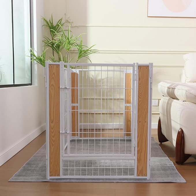 - 【Robust and Aesthetic Structure】Constructed from sturdy metal components, our puppy playpen is built to last, resisting damage from small pets while enhancing its longevity. The design is not only strong but also aesthetically pleasing, blending seamlessly with your home decor. Rounded edges safeguard your pets against scratches, ensuring their safety within the enclosure.