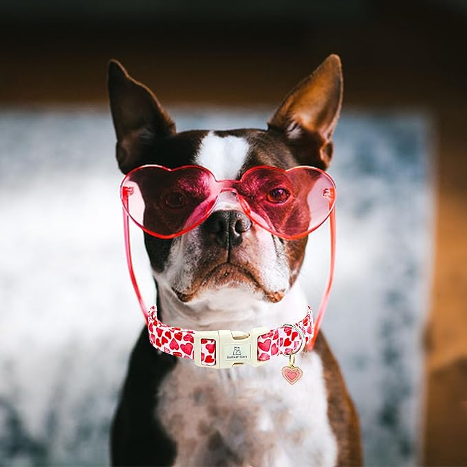 Lionheart glory Valentine's Day Collar, Red Hearts Dog Collar for Large Cute Dog Collars Spring Female Pet Gift Adjustable Heavy-Duty Holiday Dog Collar Plastic Buckle