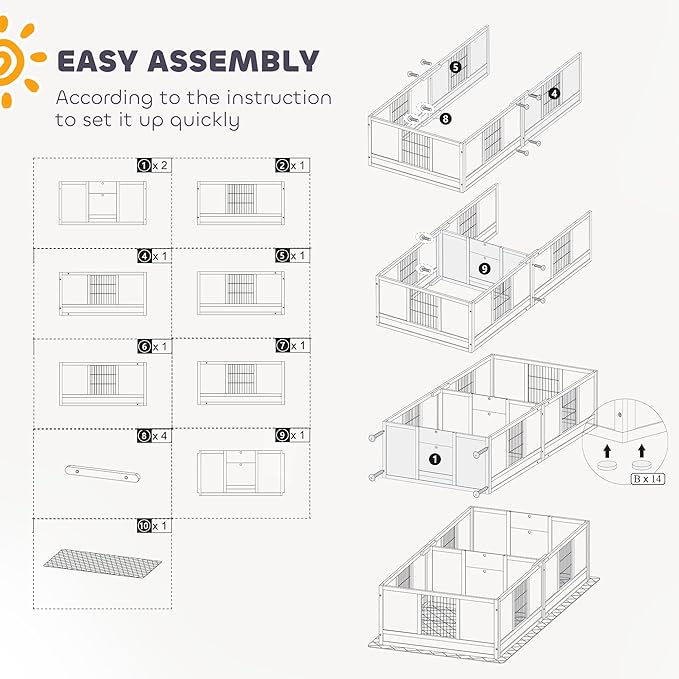 - Dual Room Configuration: Using a two-room setup, it serves as a rest and play area before birth. After delivery, it separates the puppies from the mother, providing her with a private space while she cares for and monitors her puppies.