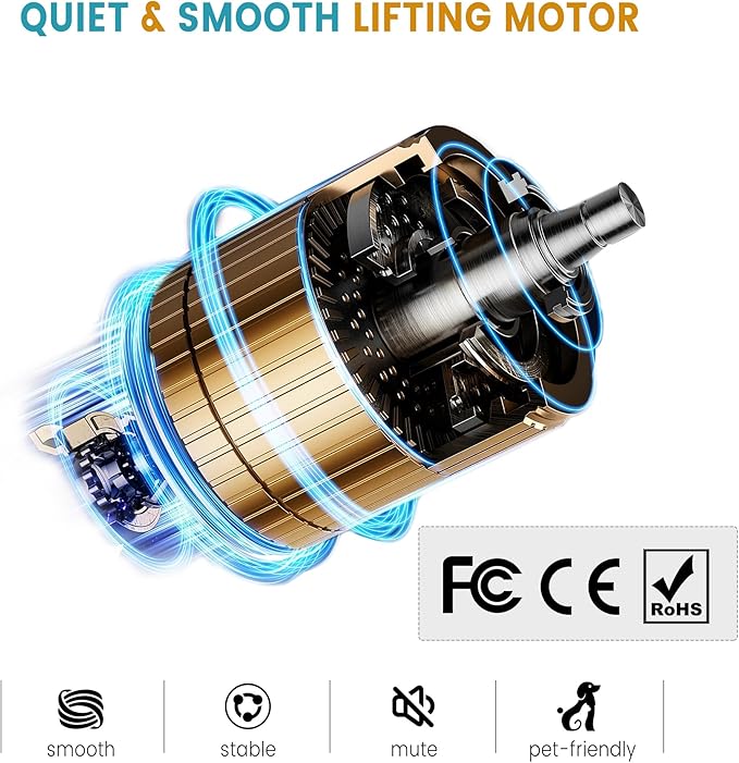 - Professional Quiet Motor:Our electric dog grooming table is certified, ensuring a professional and safe experience. It features a smooth, quiet rise and fall for your dog, prioritizing their comfort and safety during grooming.