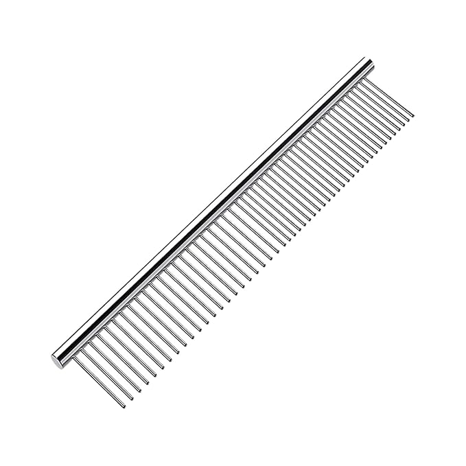 - 【2-in-1 Comb】: Wide sided for comb knot, smoothing and modeling your pet's hair, dense side for removal of loosen hair, you can use it on the legs, head or tail of your pets where the brush can’t