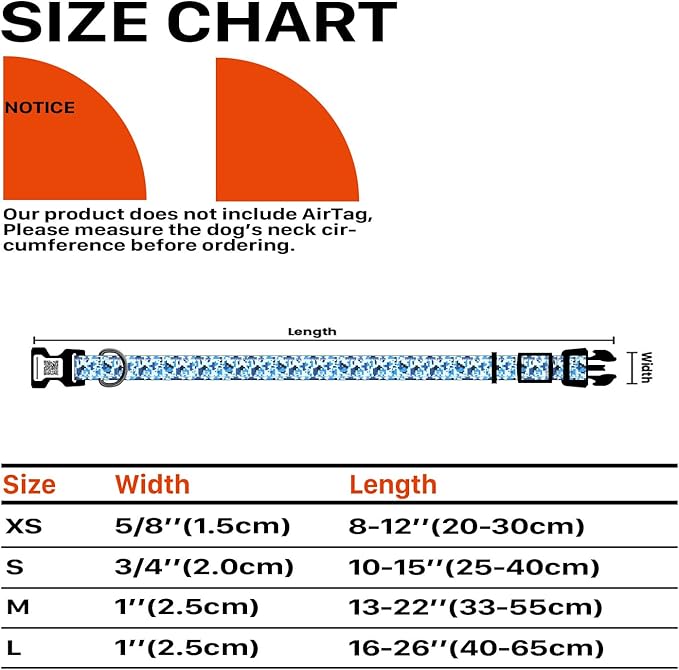 - Adjustable Wide Range of Sizes: XS: 5/8"W, Length 8"-12"; S: 3/4"W, Length 10"-15"; M: 1"W, Length 13"-22"; L: 1"W, Length 16"-26", Please measure the circumference of your dog's neck before purchasing