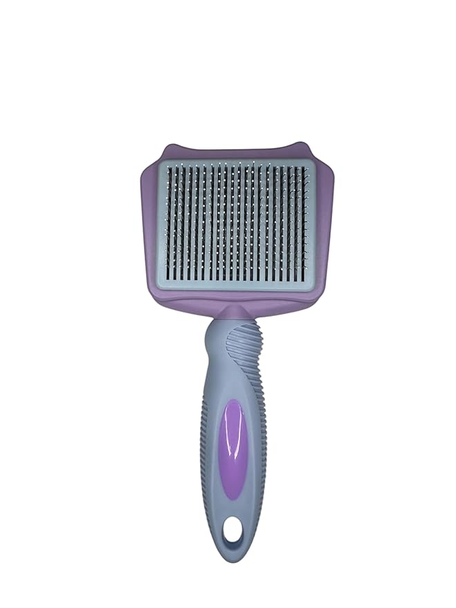 Pet Self Cleaning Slicker Brush, Skin Friendly Deshedding Grooming Tool for Shedding & Haired Pets, 3 Colors Available Pink, Blue and Purple (Purple)