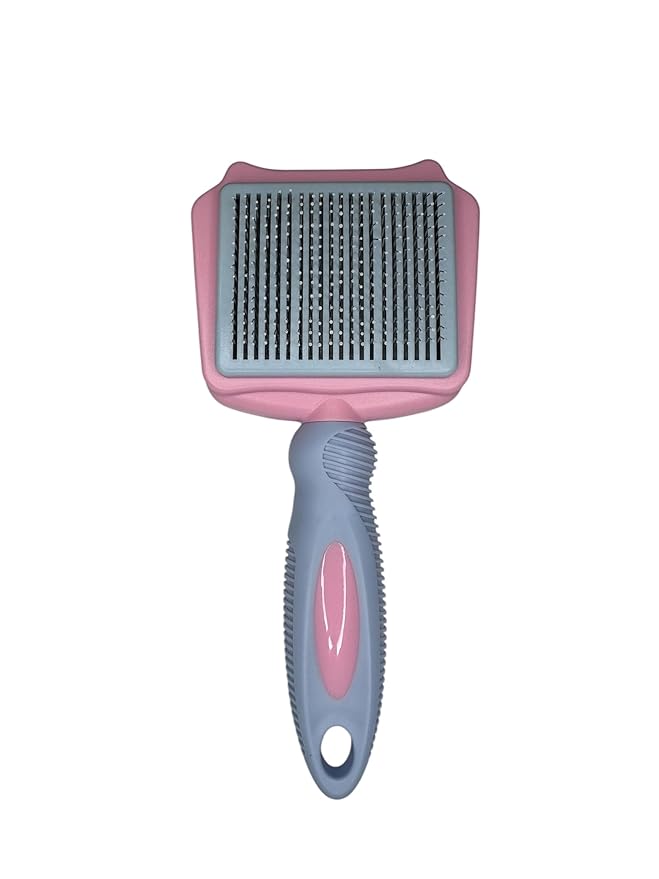 Pet Self Cleaning Slicker Brush, Skin Friendly Deshedding Grooming Tool for Shedding & Haired Pets, 3 Colors Available Pink, Blue and Purple (Pink)