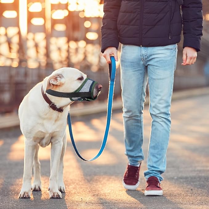 - Breathable Mesh Muzzle: The dog muzzle for large dogs is crafted from high-quality mesh fabric that is lightweight, soft, and long-lasting. Its ultra-breathable design ensures excellent ventilation, allowing dogs to breathe easily. The soft padding at the front of the muzzle protects the dog's nose from friction, offering an extra level of comfort.