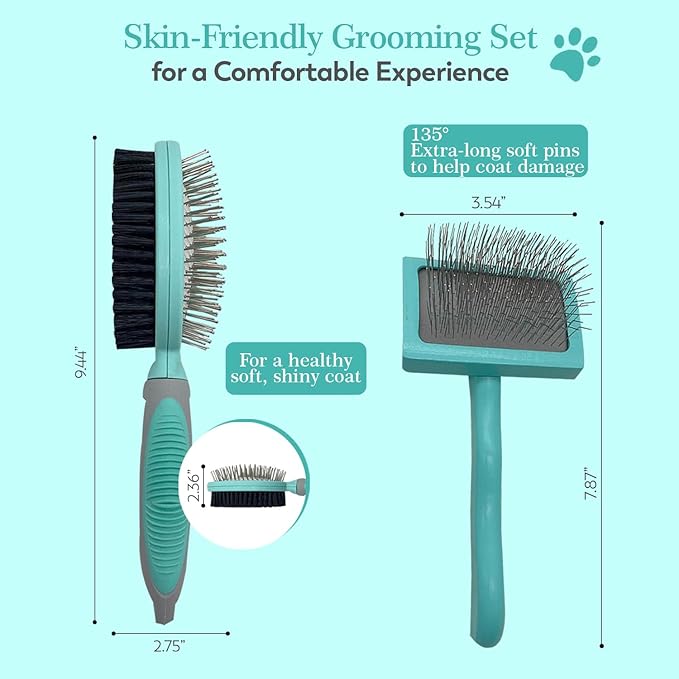 - 🐾 Benefits of Brushing: Regular brushing keeps your pet's hair clean while stimulating blood circulation. Our double-sided brush features coated stainless steel pins to remove loose fur and nylon bristles to redistribute natural oils for a shiny, healthy coat