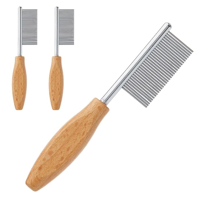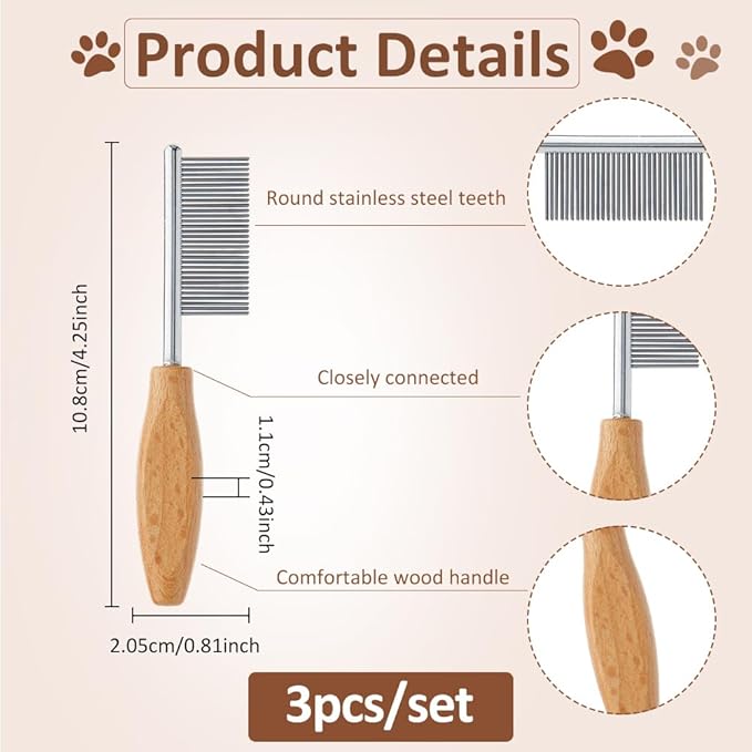 SUPERFINDINGS 3Pcs Pet Face and Finishing Comb for Cat Dog Stainless Steel Pet Hair Combs Fuller Brush Tear Stain Remover Tool for Grooming Pets with Long, Curly Hair Fur Detangler Tool Accessories