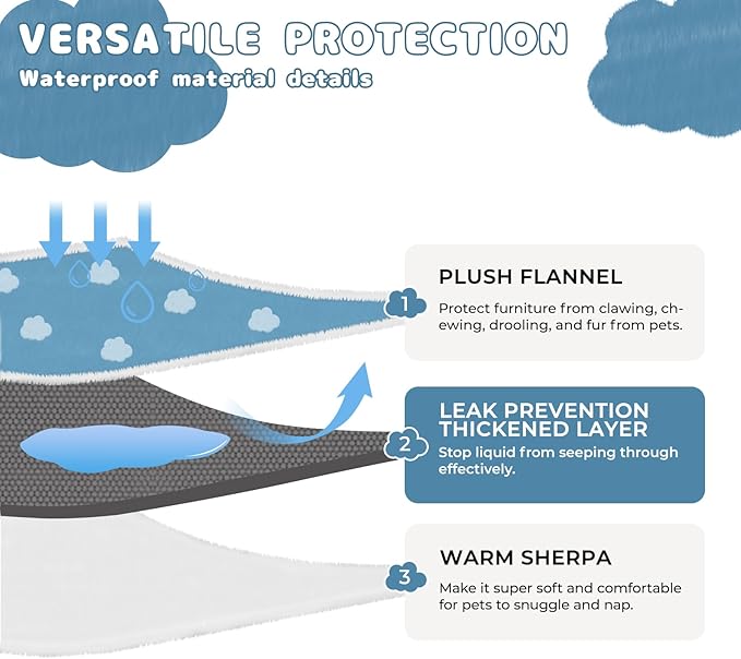 - Furniture Protection: The waterproof and reversible design not only keeps your pet snug but also shields your furniture, including couches, chairs, beds, car seats, and more, from chewing, spills, scratching, and shedding. Safeguard your belongings from those adorable but sometimes destructive little paws, making it an ideal gift for pet owners and their pets.