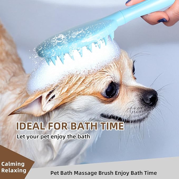 Pet Silicone Shampoo Brush for Long & Short Hair Dogs Cats, Shower Wash Curry Massage Brush (BLUE)
