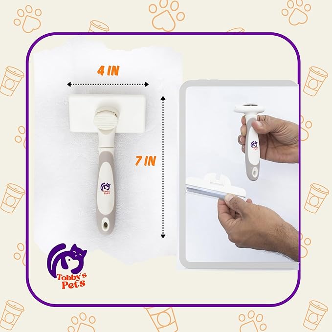 The pet grooming brush works wonders on my golden retriever’s thick coat. It removes loose fur effortlessly and my dog actually enjoys being brushed now.