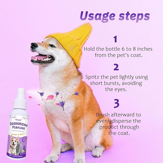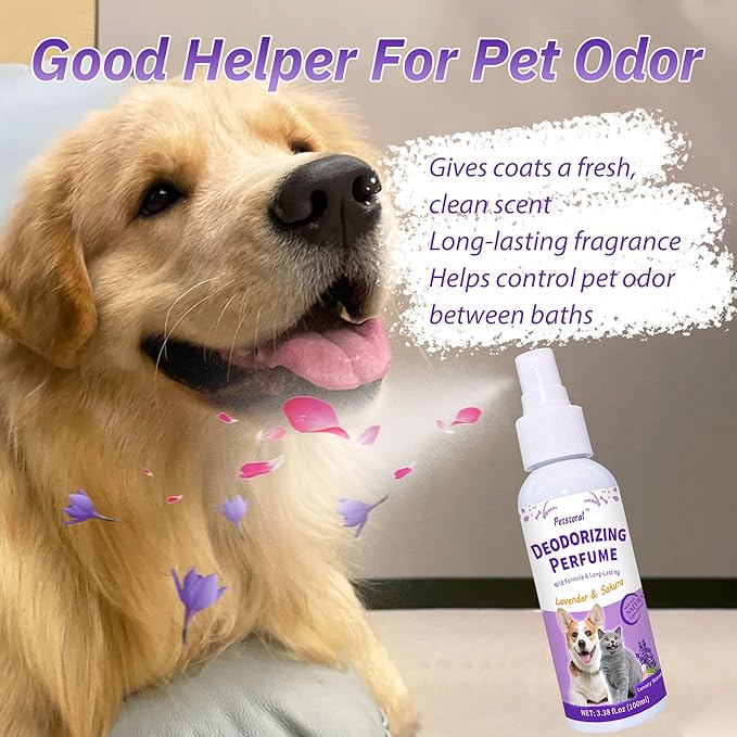Deodorizing Perfume Spray for Pets, luxury Scent, Long-Lasting Fragrance, 3.38 Fl Oz. (Lavender & Sakaru)