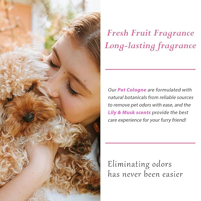 Pet Cologne, Lily & Musk Scent, Deodorize & Refresh, For Dogs, Cats, Puppies, 3.38 fl.oz (Lily & Musk)