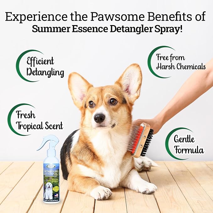 Detangler Spray - Summer Essence Scent - Deodorizing Spray for Dogs and Horses, Leave-In Conditioner, Gently Releases Tangles, Softens Coats, Freshens Scent | Made in the USA | 8 oz