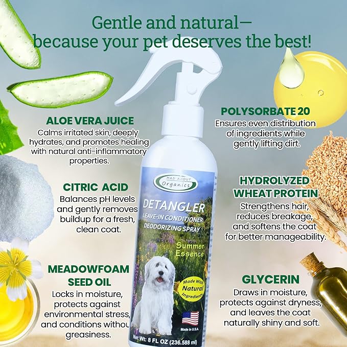 - Gentle for All Ages: Suitable for pets 4 weeks and older—including dogs and horses—our detangling spray is formulated without strong ingredients. An American-made, mild formula designed to care for and refresh coats between washes.