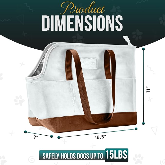 Luxury Dog Purse Carrier for Small Dogs, Faux Leather Pet Carrier Purse, Secure Harness Clip, Dog Tote Bag Carrier for Small Dogs and Puppies - White