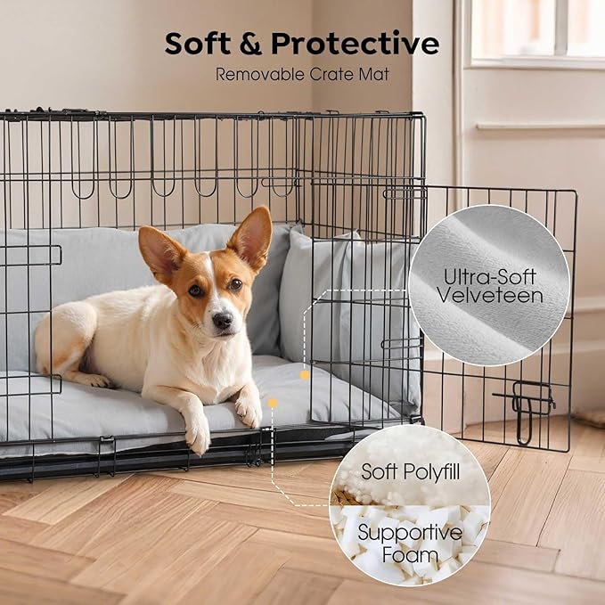- Dog Crate Bumper-Dog Tail Protector: The dog crate with protective bumpers enhance pet comfort and safety with soft interior padding. These cushions prevent collisions with hard surfaces, ideal for injured, energetic or anxious dogs. The padding boosts comfort, allowing peaceful rest for extended periods. Additionally, It can reduce the noise caused by hitting the cage