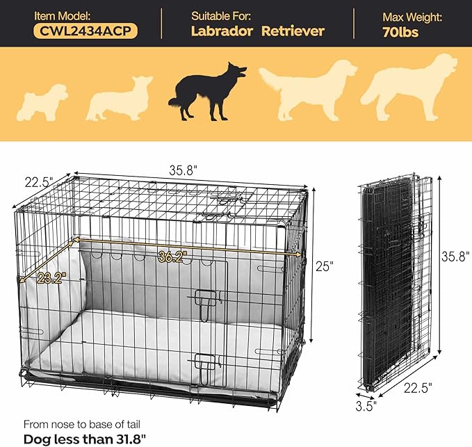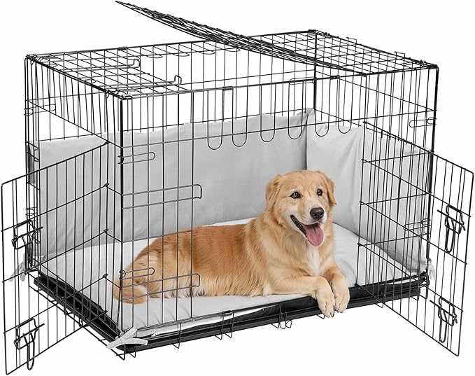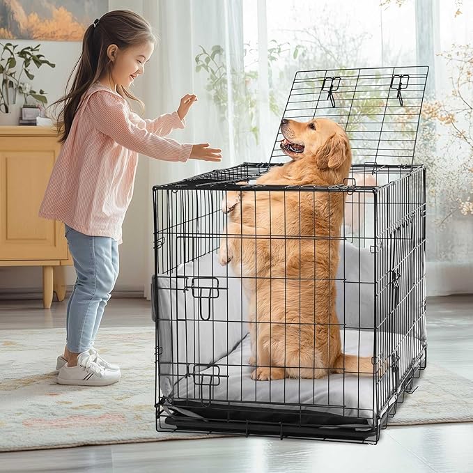 - Dog Cage Kit: Our large dog crate is constructed from durable metal-wire. Include: 1 x metal wire dog crate, 1 x soft dog crate pad, 1 x carrying handle, 1 x removable leak-proof pan tray.