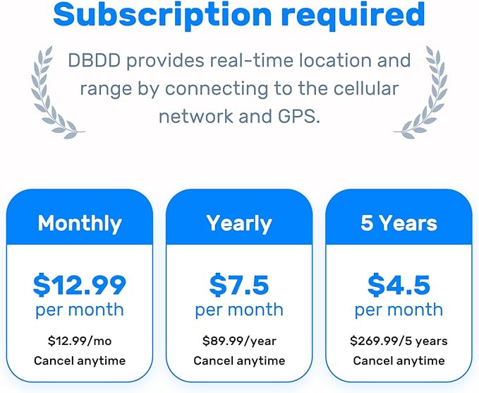 - Subscription Plan Needed: The Subscription provides monthly, 1 year package, 5 years package, starting from $4.5 /month (varies depending on subscription plan). No other hidden costs. The dog tracker works for Apple IOS products and Android