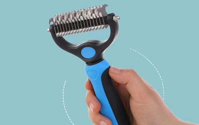 Pet Grooming combs - Double-Sided Deshedding Dematting Tool, Undercoat Rake for Dogs & Cats, Extra-Wide Dog Grooming Brush & Deshedder Comb for Long Hair (Blue)