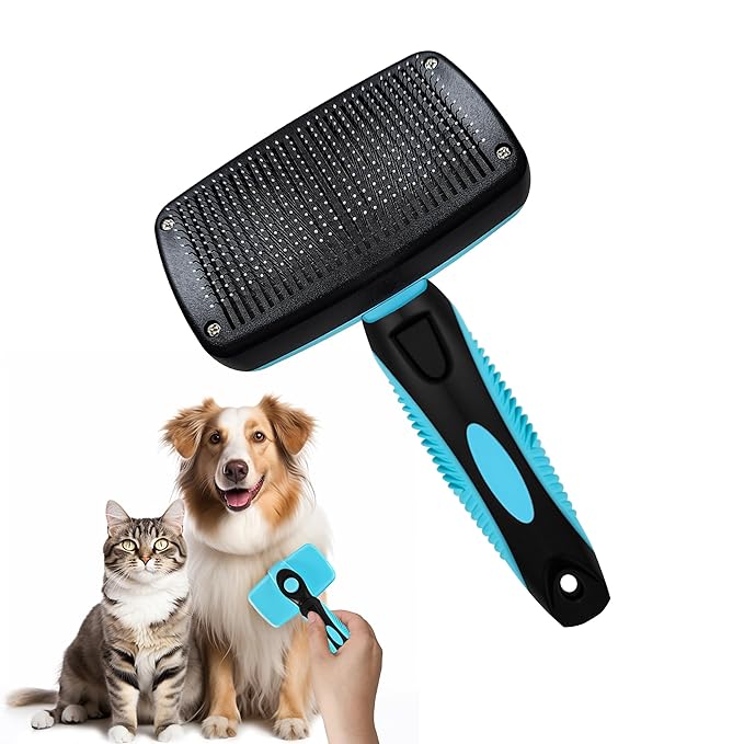 The pet grooming brush works wonders on my golden retriever’s thick coat. It removes loose fur effortlessly and my dog actually enjoys being brushed now.