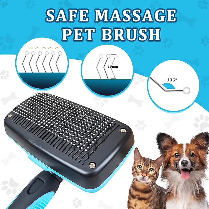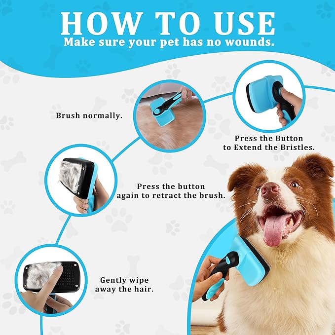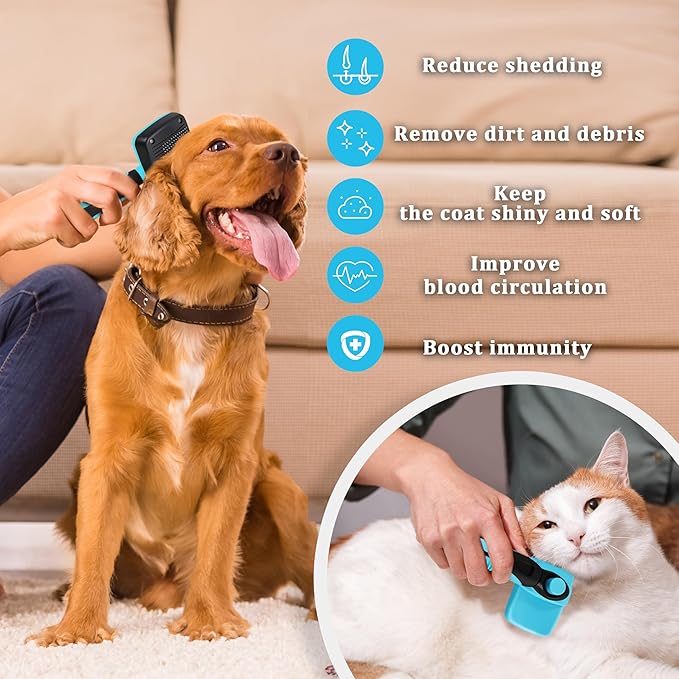 - 【One-Touch Self-Cleaning Design】Say goodbye to the hassle of manual cleaning with self-cleaning brush. Just press the button to start grooming your pet, and press it again to effortlessly release the collected hair. The self-cleaning mechanism ensures that no hair gets tangled, saving you time and effort.